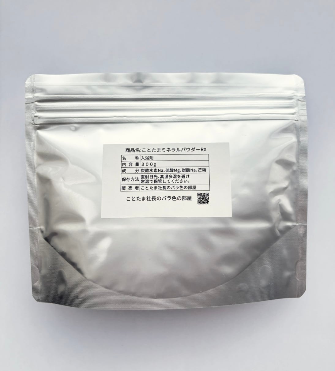 この「ことたまミネラルパウダーRX」は、ことたま水素温泉風呂用に追加開発されたもので、ことたま水素温泉ミネラルパウダーに加え機能を改善し新しく開発致しました。